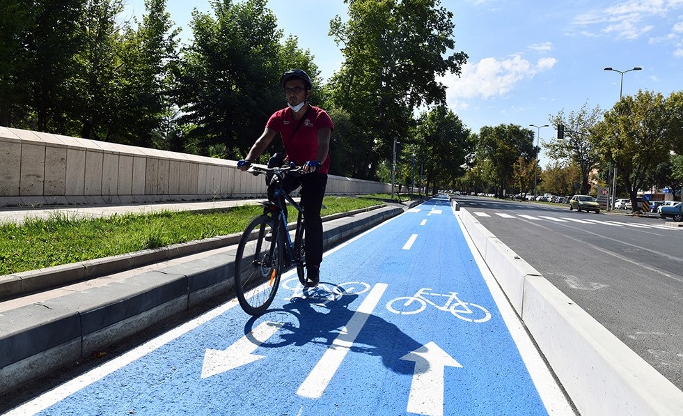 Kent içinde alternatif ulaşımı ve hareketliliği arttırmak, trafik sıkışıklığını ve çevre kirliliğini önlemek amacıyla çalışmalarına hız verilen “Bisiklet Yolu Projesi” için ilk adım atıldı. 9 etaptan oluşan bisiklet yolunun Anıtkabir önündeki bölümünün çizgilerini çekerek bariyerlerle araç trafiğinden ayıran Büyükşehir Belediyesi, Gençlik Caddesi’ni kullanan Başkentli bisikletseverlere sürpriz yaptı.